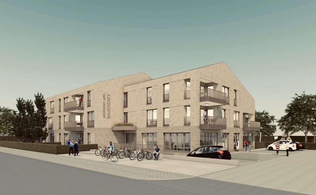 Am Baierort entsteht ein Ensemble aus drei Gebäuden, das Wohnen, Begegnung und Alltag verbindet. Mit 28 Wohnungen und ergänzenden Gewerbeflächen wird eine lebendige Nachbarschaft geschaffen, die durch Vielfalt und Gemeinschaft geprägt ist.